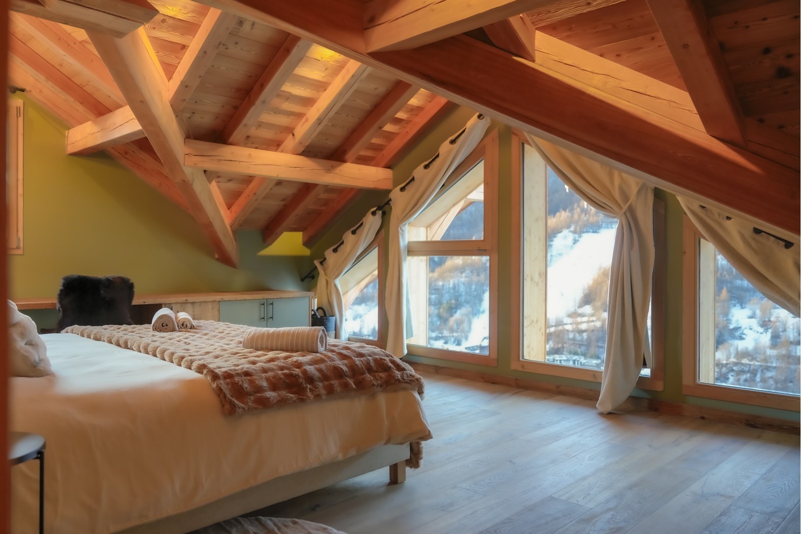 Réalisé en 2024, le chalet Aquila cultive l'art de l'étonnement. Hauteurs sous plafond vertigineuses, équipements d'exception, vues à couper le souffle, matériaux nobles... Ici, tout se conjugue en extra large.