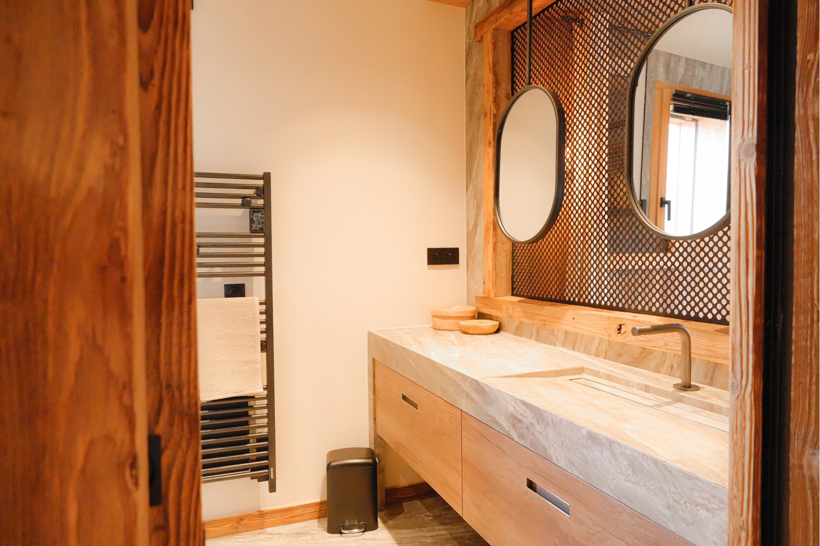 Un ascenseur dessert les trois premiers niveaux, garantissant aux personnes à mobilité réduite un accès complet à l'ensemble des services du chalet. Le luxe inclusif.