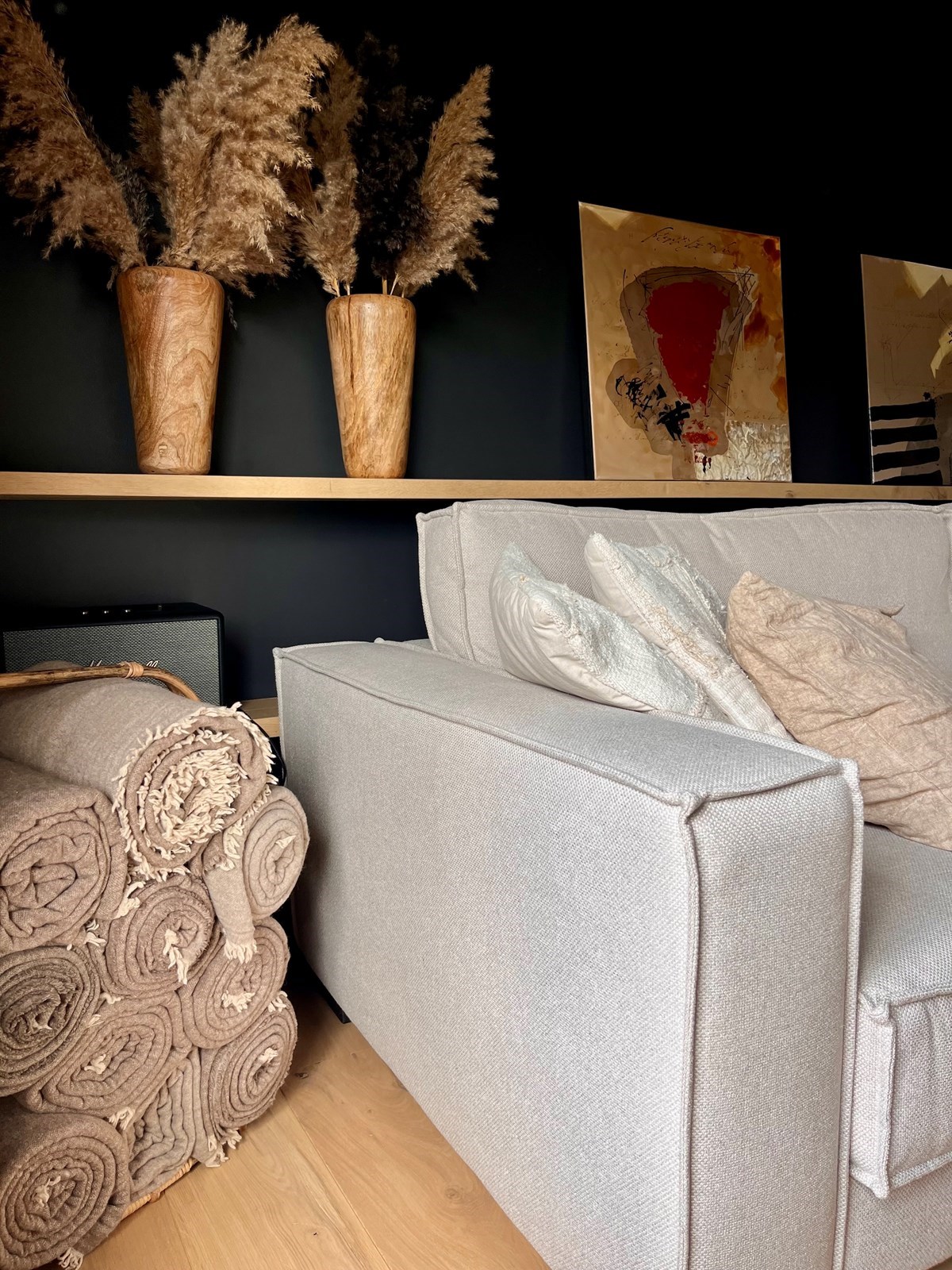 Les nombreux plaids invitent à la détente version scandinave : thé fumant ou chocolat chaud devant la cheminée crépitante. Le bonheur est dans les choses simples.
