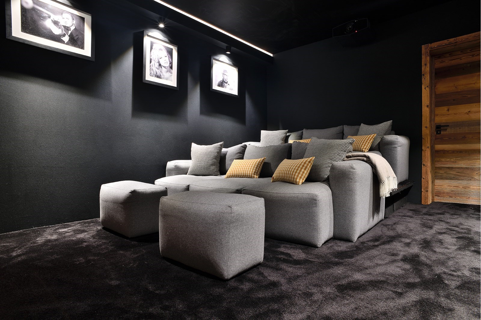 Espace bien être avec bassin de nage et sauna - Salle cinéma - 2 chambres doubles avec salle de douche, TV et toilettes - Cave