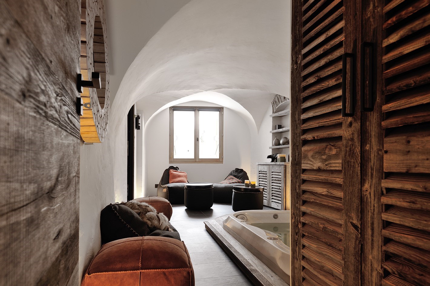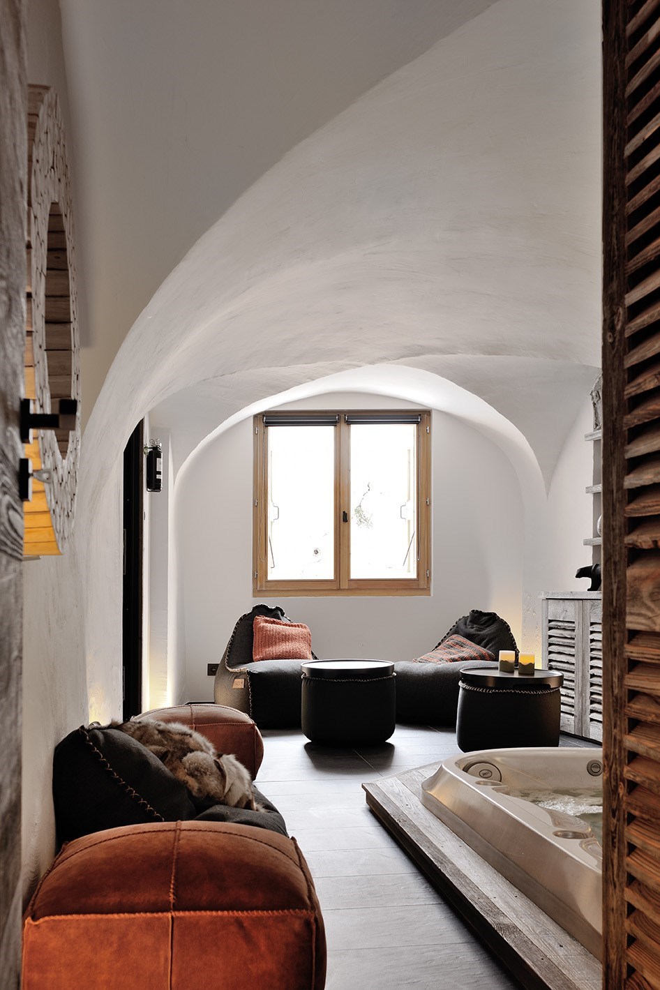 Là où autrefois les animaux trouvaient refuge, un espace bien-être contemporain accueille désormais un spa intérieur. Les pierres centenaires dialoguent avec l'eau chaude dans une harmonie intemporelle.