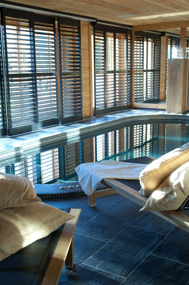 A lap pool with relaxation corner, a glass sauna in dialogue with the mountain. Water, warmth, landscape: the perfect trinity of alpine relaxation.