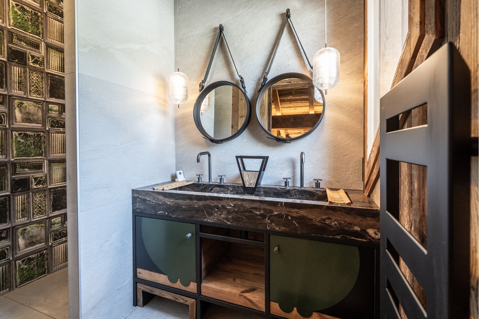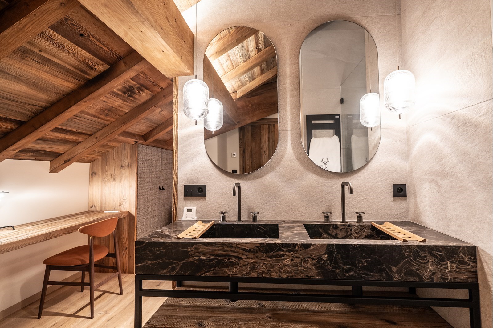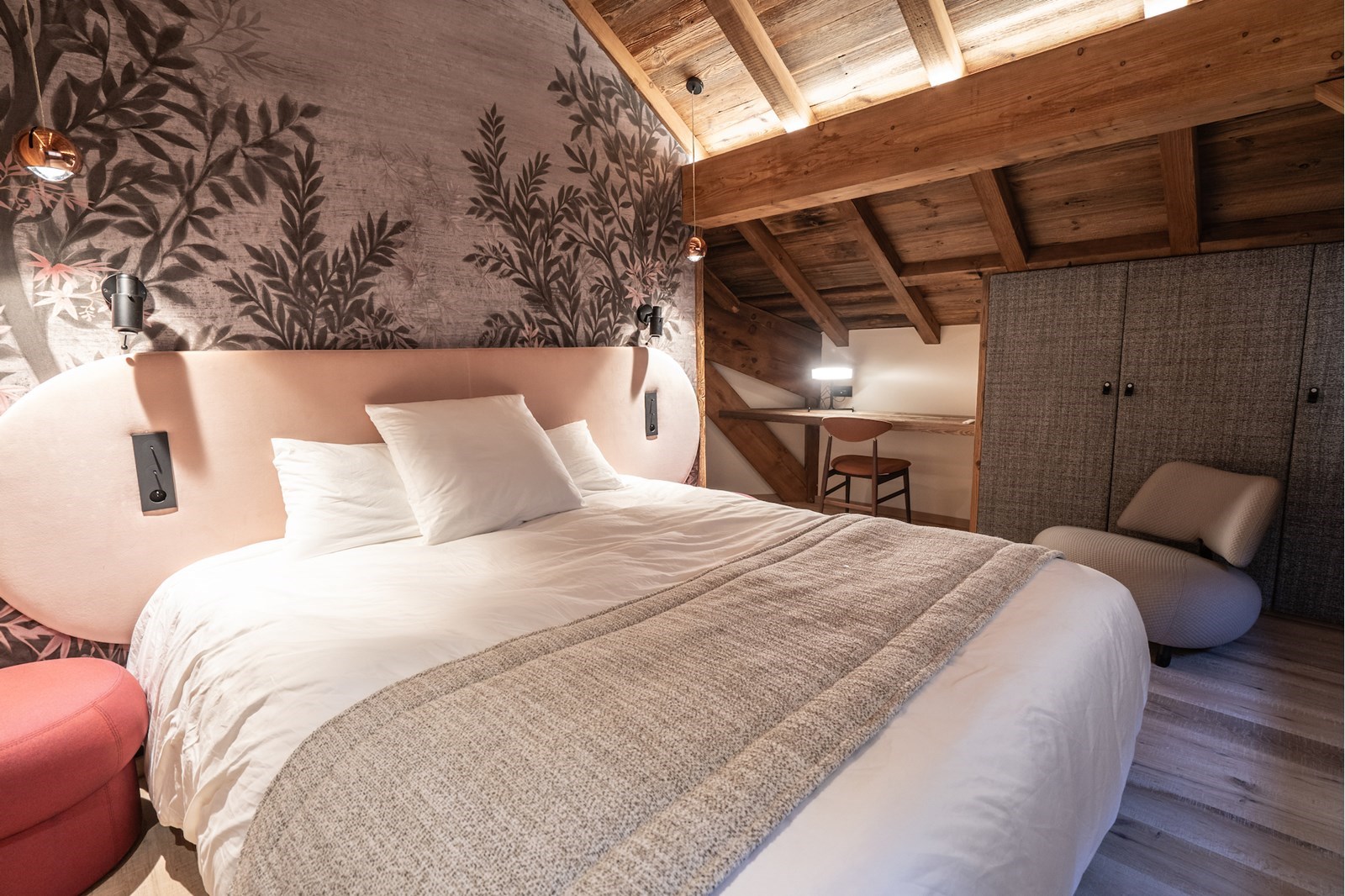 The décor dares. It diverts, reinvents, elevates. The forest invites itself inside, raw stone metamorphoses into steps, leaves are adorned with metal, staircases defy gravity in airy lightness.